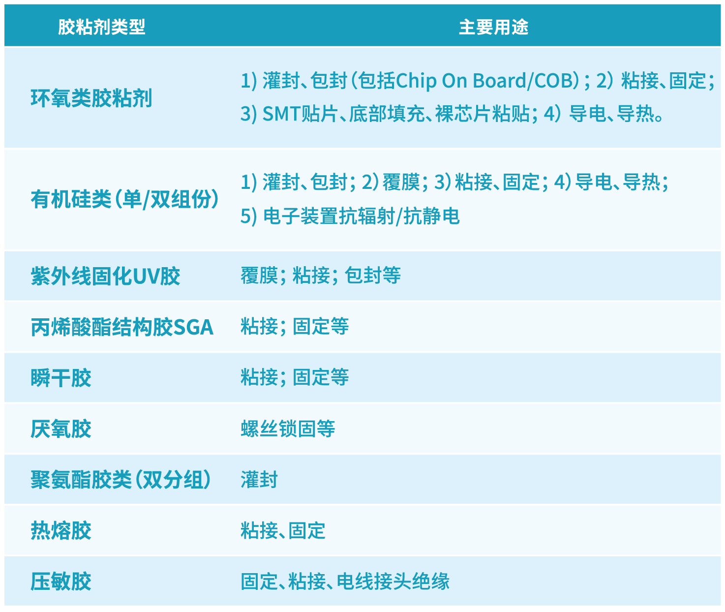 无线耳机用的胶粘剂主要有环氧类胶粘剂、瞬干胶和UV胶等。