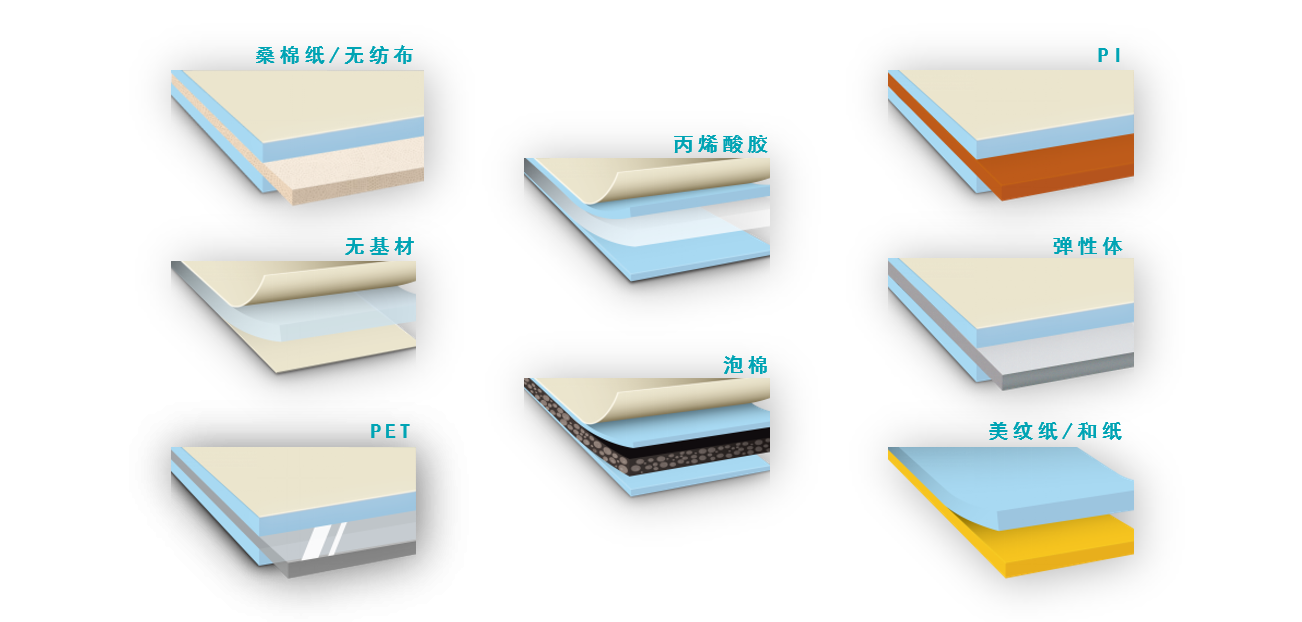 覆盖PET,PI,弹性体,泡棉,桑棉纸等多种产品