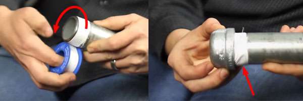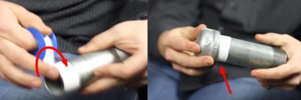 由于螺纹有旋转方向,为了让生胶带更紧密地缠在接口上,胶带的缠法也有一定讲究。如果缠胶带的方向和扭上螺纹接管的方向相反,那么上接管的时候,很容易会把生胶带松开: